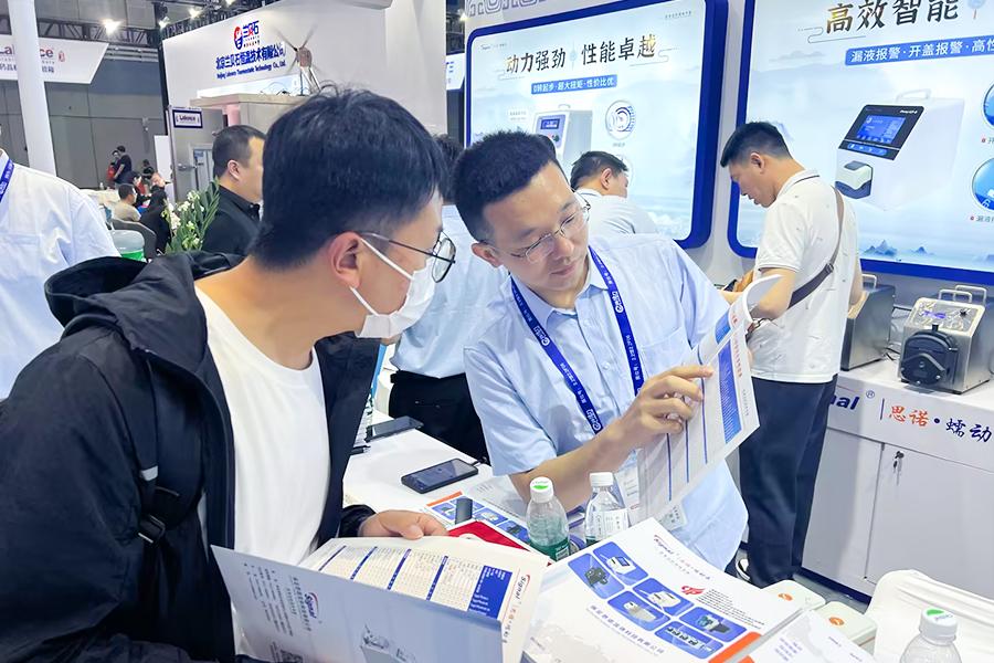 在展會現場,眾多參觀者對思諾蠕動泵表現出濃厚興趣,紛紛駐足了解產品性能及應用場景。
