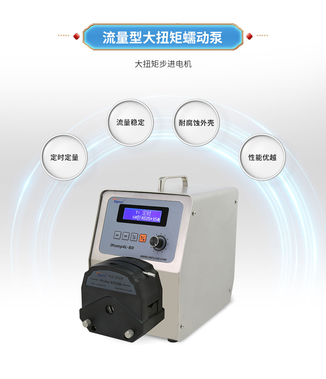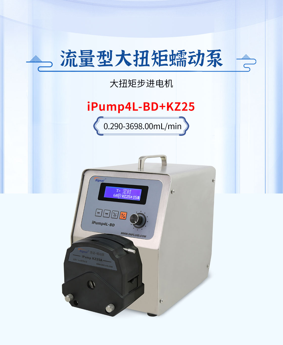 2.大扭矩步進電機驅(qū)動,適合多泵頭串聯(lián)使用;