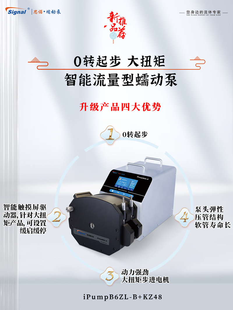 首先,iPumpB6ZL-B+KZ48屬于智能流量型蠕動泵,可0轉起步。同時,這款產品可進行超大流量液體傳輸,極大地提高了生產效率。