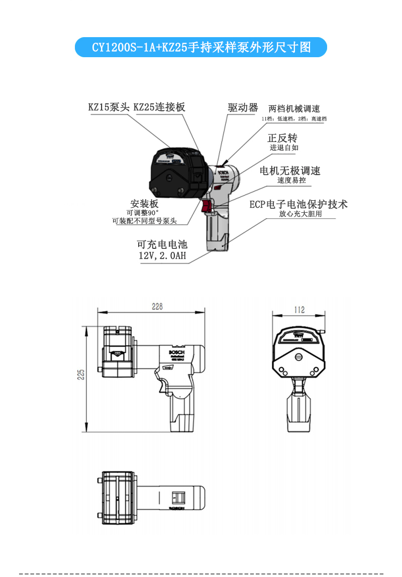 ●可裝配YZ15、YZ25、BZ15-14、BZ15-16、BZ25與KZ25等六種型號泵頭,適配多種規格軟管,流量范圍大,可靈活采樣。